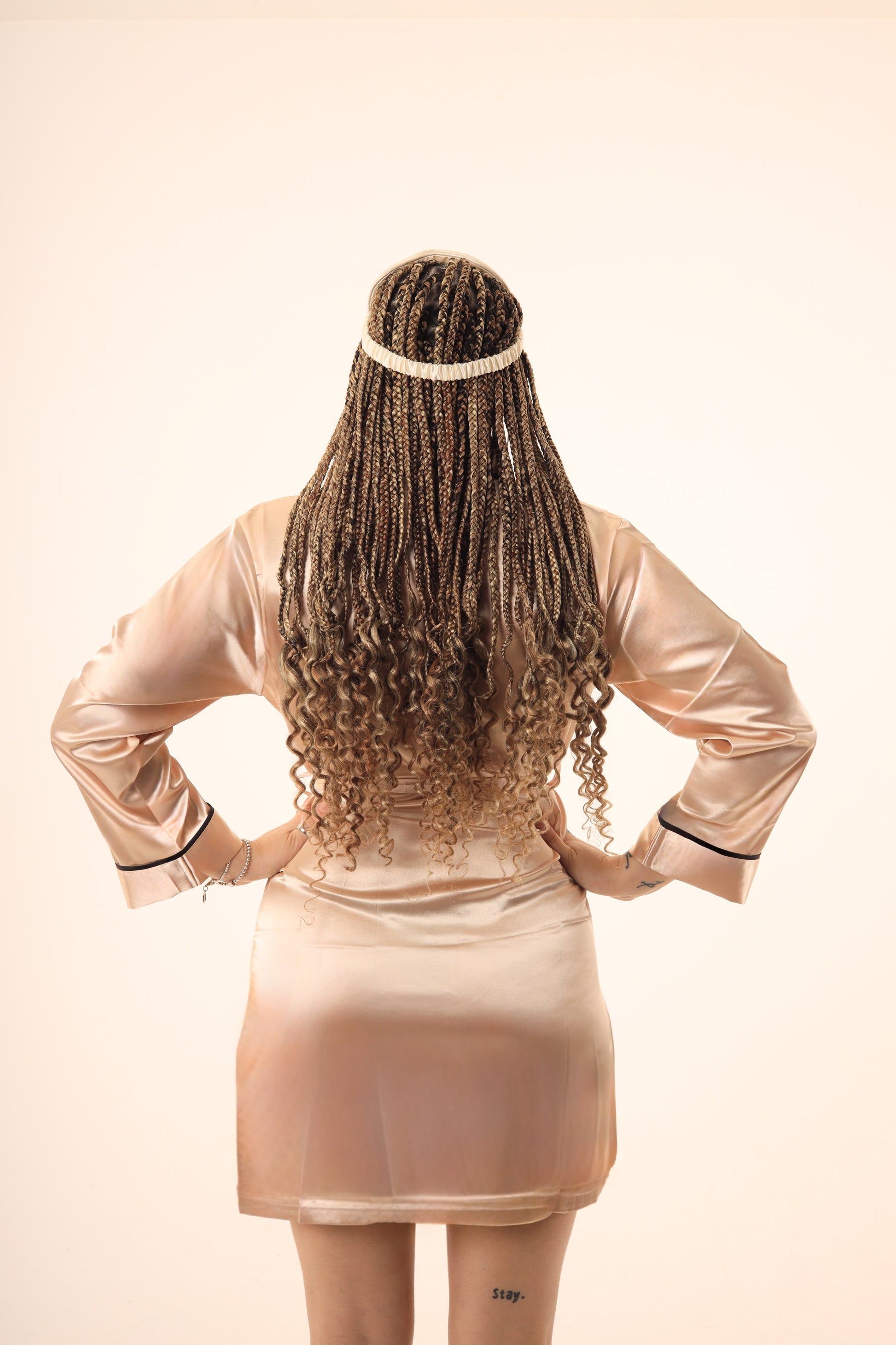 The Sofias Desires Satin Robe Set is crafted from smooth, silky fabric that feels soft and lightweight against the skin. Designed with a flattering wrap fit, adjustable waist tie, and delicate piping details, this robe offers effortless elegance for lounging or winding down.